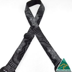 Aboriginal Art Rag Uke Strap – Dreamtime River Bed Black IUKE-16