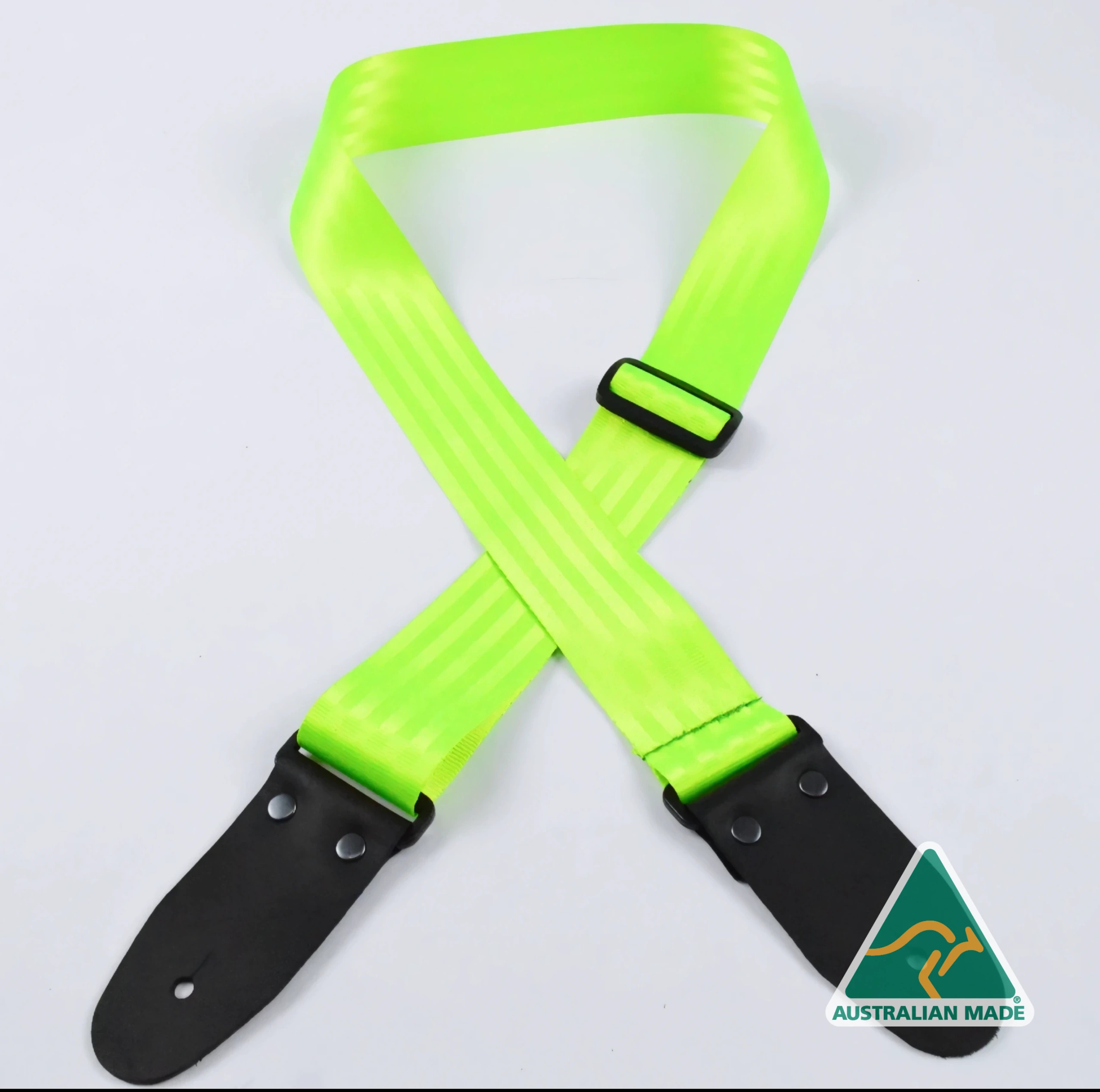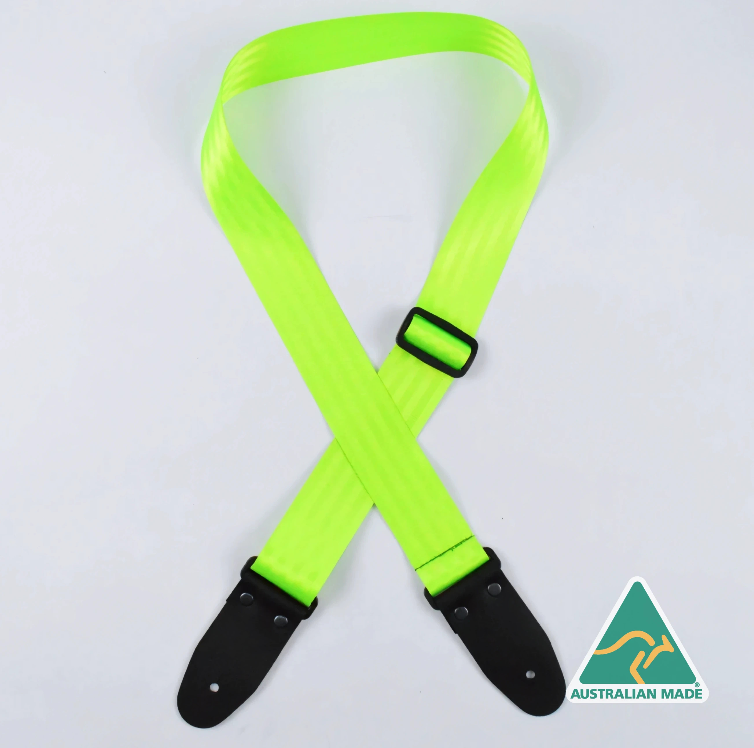Fluro Green Herringbone seat belt webbing 50mm guitar strap.