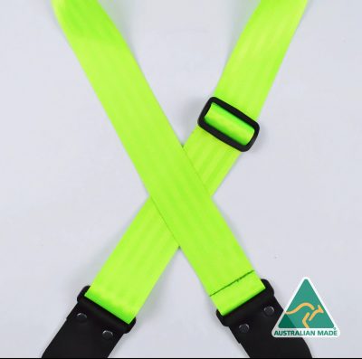 Fluro Green Herringbone seat belt webbing 50mm guitar strap. SAH-FLGR