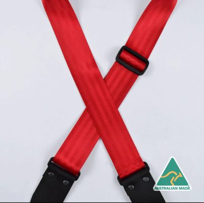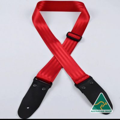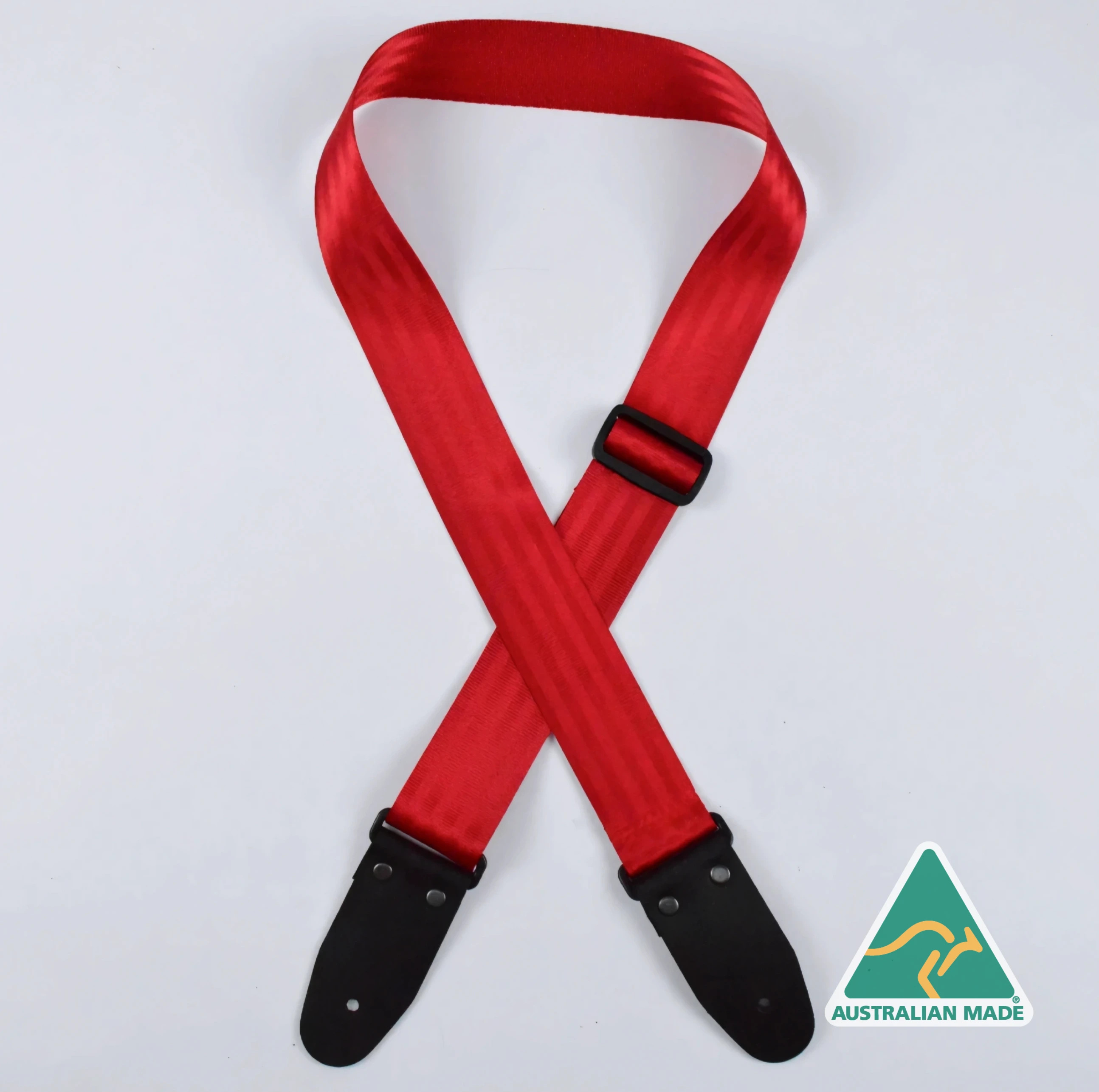 Red Herringbone seat belt webbing 50mm guitar strap. SAH-RE